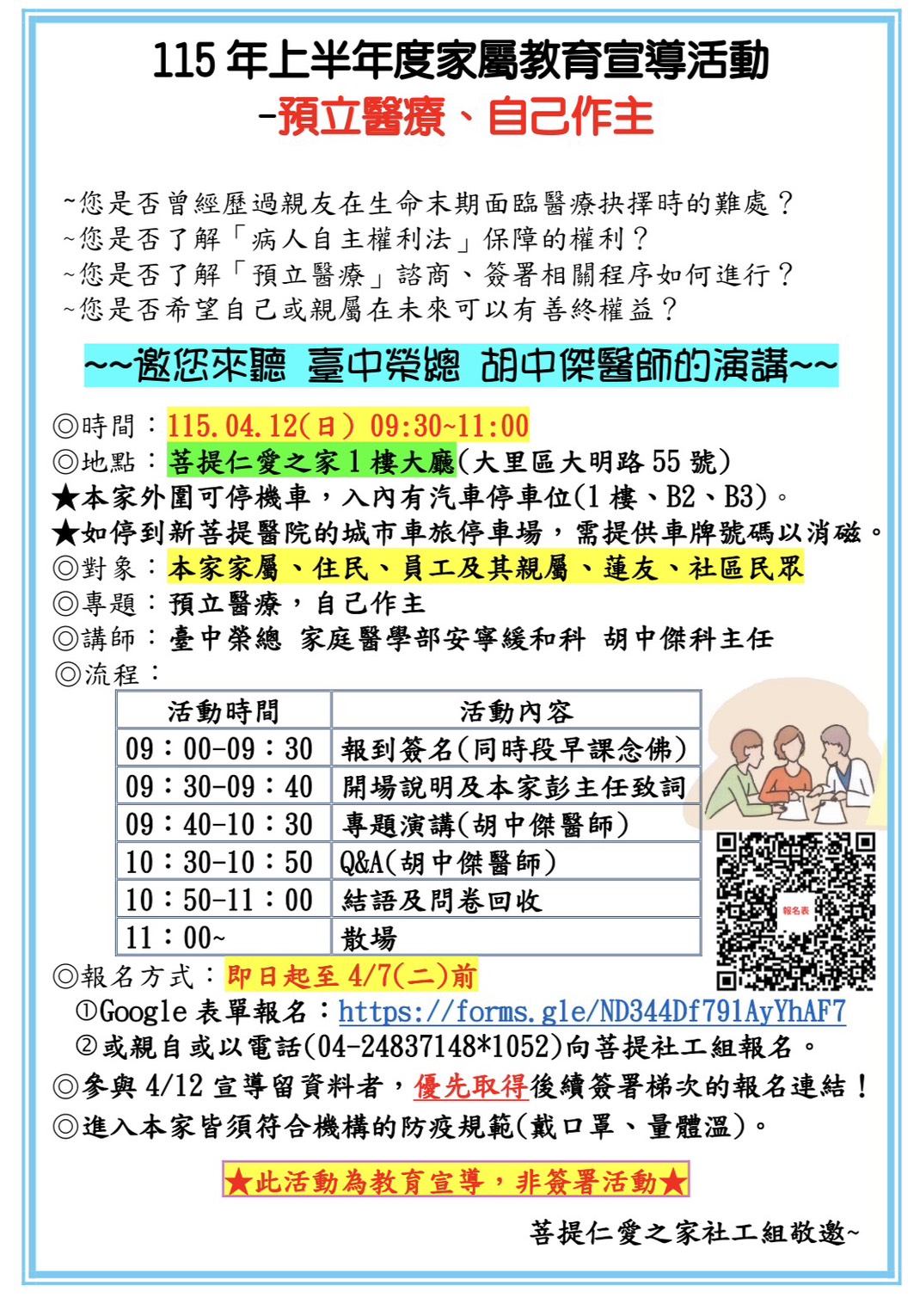 115年度上半年預立醫療宣導與社區團體諮商簽署活動 →