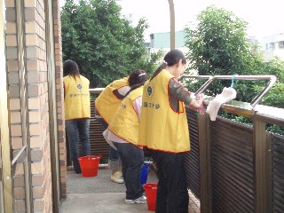今日下午朝陽學生一行人來訪本家實施勞作教育,同學們人手一只水桶和一條抹布,陸陸續續地前往每個樓層外的陽台處,將久未清掃的鋁欄杆擦拭乾淨,回想學生時期,每個人在大一時都要實行勞作教育,當時的心情很無奈;但現在身為本家的員工,非常感謝這些參加勞作教育的學生,能利用學校的義務課程來幫助本家的環境清潔,也因為這些學生,本家的環境才能深得長者的歡喜。