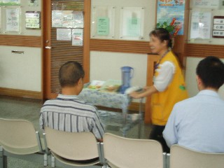 法務志工親切招呼前來看診的民眾