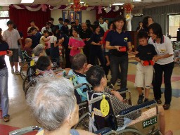 本週六適逢「菜香耕有機生活館」的志工團體來本家關懷長者,攜家帶眷一起投入的他們全部約30到40人,穿著整齊的制服很有精神的為院民服務。