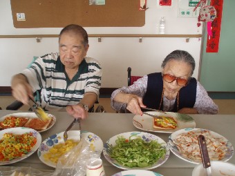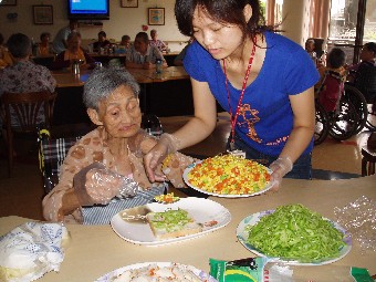 這次六月份的團體活動是自製香濃披薩,許多院民對於這個新的料理抱了極大的興趣,有些院民表示自己不太會做這種西式的料理,但經由工作同仁的鼓勵下,院民一個一個的做出漂亮的作品,院民也覺得非常的稀奇又高興。對於一些喜歡嘗試新料理的院民們,一邊做還一邊流口水,做完後,一直催促在一旁幫忙烤披薩的同仁,問披薩什麼時候才可以吃丫?可以見得院民已經聞到烤披薩的香味,迫不及待地想要吃到自己親手做的披薩了。