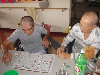 活動前原本邀請了本家幾位安養長輩來協助活動,但是長輩們因感冒不適無法與會,甚為可惜,但在四樓一隅有個鼓舞人心的畫面,兩位阿公正悠閒的對奕中,自從林姓阿公參加了上午茶活動,引發阿公想要延續下棋的興趣,工作人員協助準備了一副棋具,鼓勵和同樣棋藝精湛的蕭姓阿公時常下棋,棋藝活動現已成為二人每日的休閒活動。