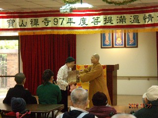 歲末前夕,寶山禪寺的住持、師父以及志工們再次來到本家舉辦「寶山禪寺97年菩提滿溫情情」的關懷活動。
