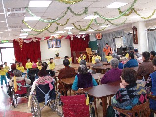 寒冷天氣下,本家正忙於為院民與家屬準備圍爐的前夕,更逢台中縣大里市立托兒所師生一行20餘人,提前來本家為長者做歲末祝福。