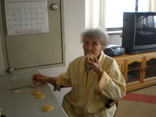 創意手工餅乾製作過程中,許多爺爺奶奶交頭接耳的討論如何捏塑,有些長輩將鬆軟的麵團捏製成鮮黃的蓮花,或將搓揉成芝麻點綴的湯圓,透過爺爺奶奶的雙手按、壓、捏、搓、揉,蓬鬆的麵團頓時變成許多小塊的可口餅乾。小塊丁的半完成品令長輩垂涎三尺,有些長輩抵擋不了麵團的誘惑,差點將尚未烘烤的餅乾放入嘴中,鬧得其他爺爺奶奶哄堂大笑。長輩捏塑完成的造型餅乾,依序排列放入烤箱之中烘烤,經過10-15分鐘的高溫烘培,香氣四溢的奶油芝麻,陣陣的從烤箱飄散於養護層樓,爺爺奶奶們聞到撲鼻的餅乾香,不禁都垂涎欲滴的期待著,品嘗自己親手製作的餅乾。