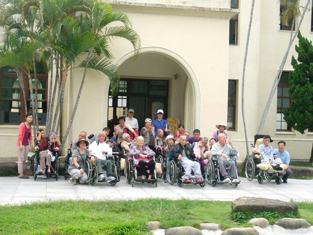 16位長輩與18位工作人員一早即整裝於一樓等候復康巴士,陳爺爺還穿上西裝外套,顯現對這次活動的慎重與期待,4樓的照服督導事前已和工作人員規劃流程與叮嚀事項,所以上下復康巴士的流程順暢,啟程後也按慣例做早課,讓雀躍的心暫為安定。