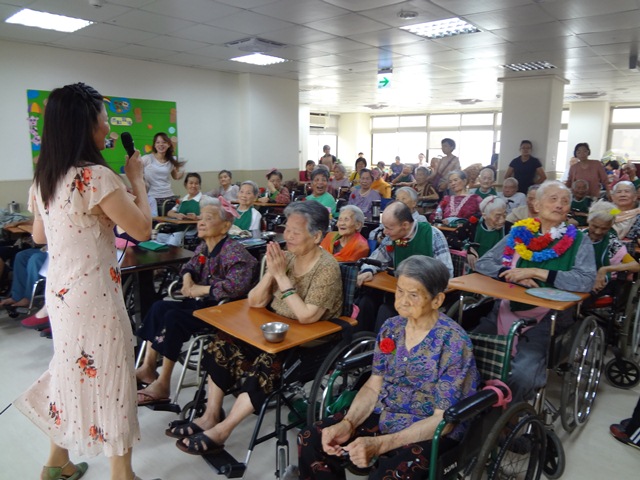 二樓住持人與照服員先為大家獻唱一首歌將活動氣氛炒熱。隨後即邀請日語老師為大家演唱四首的日文歌曲,讓每位長輩和家屬一飽耳福。隨後修平大學學生馬上為大家帶來兩首帶動唱,每位長輩在台下都跟著擺動同樂。