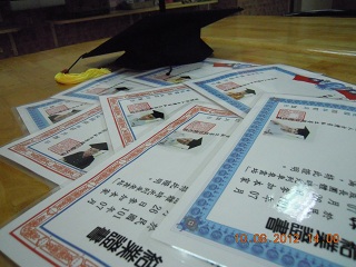「結業式」時以簡報展示每位長輩的學士照,看著自己戴方帽的照片,長輩們都不自覺的露出微笑,由社工組長代表本家來肯定長輩們的參與,並頒發獎勵品鼓勵長輩們持續參與本家的各項活動以活躍老化,頒發結業證書時,長輩們開心的再戴上學士帽一一與組長合照,最後參與的9位長輩與工作人員再一同拍卡哇伊的大合照,在溽暑的7月天歡喜圓滿了四次的生活適應成長團體活動。