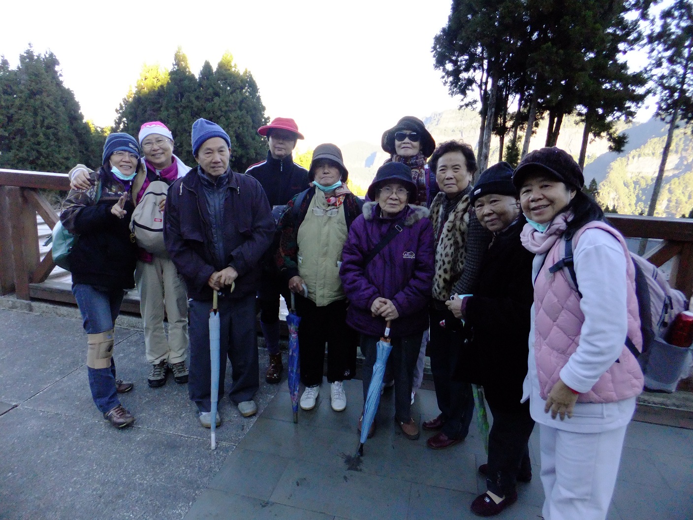 為了不讓長輩們觀日不順暢,行前禦寒配備工作同仁準備的非常齊全,長輩們在同仁的協助之下都完成了這個壯舉。