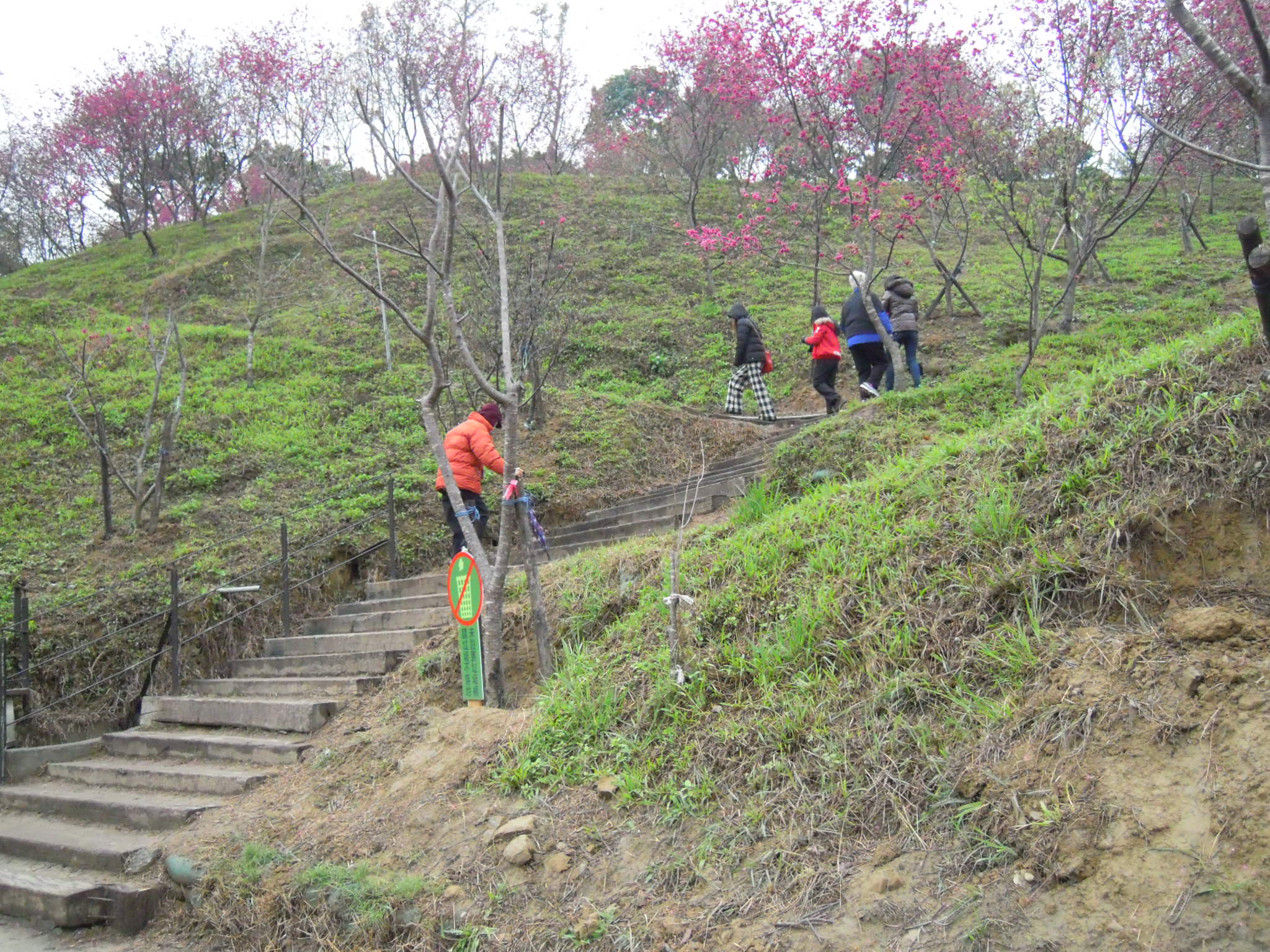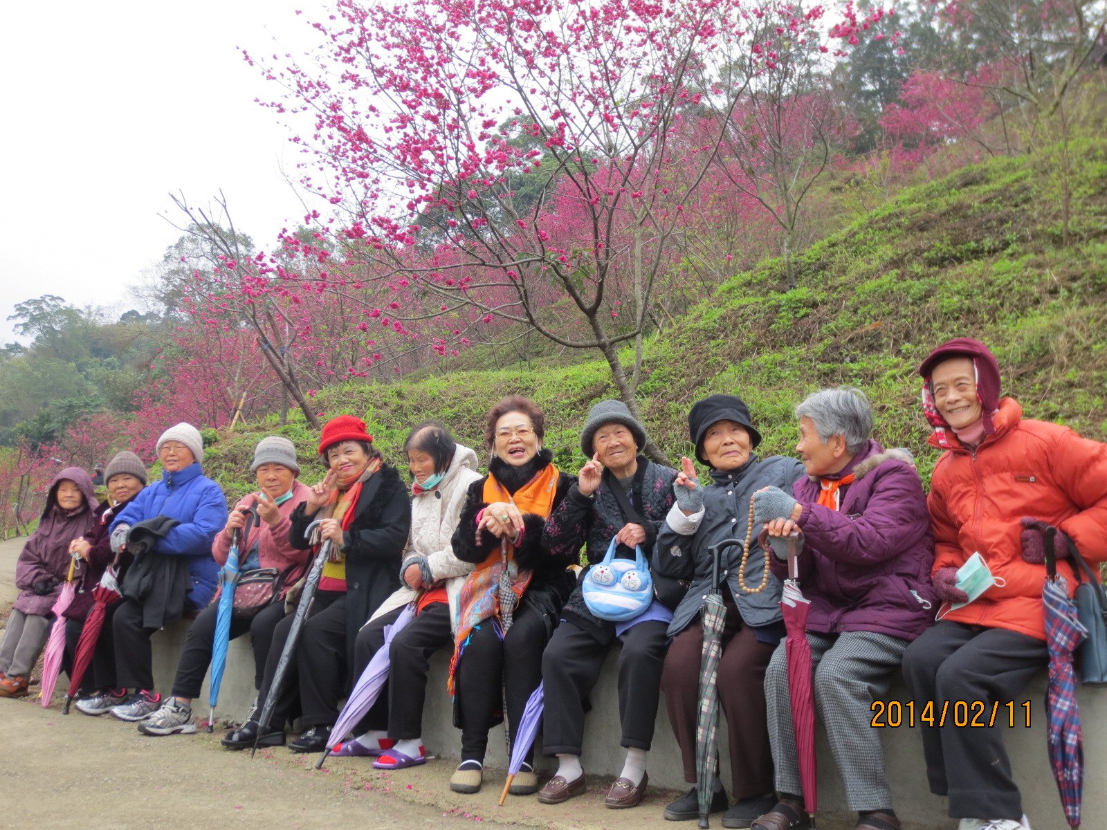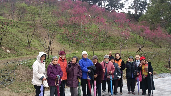 2月11日一早一行20人,前往大坑濁水巷賞櫻花,雖連日的寒流與春雨讓幾位長輩猶豫不決,但今日天空作美,出奇的微露陽光,且事前探路、規劃與安排,未與賞櫻人潮相衝突,順利到達期待已久的櫻花園。