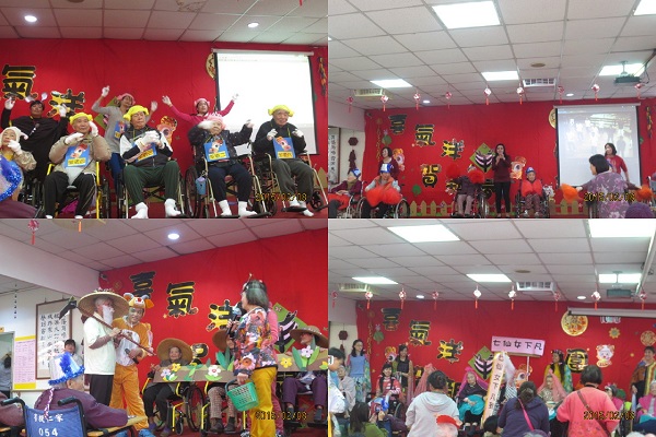 長輩們參與節目表演,在採排過程中好幾位長輩都很投入,4樓的王奶奶常主動和照服督導討論劇情的橋段如何演出;2樓的長輩常要求工作人員要多幾次的練習;協助3樓演出的吳奶奶不斷的背誦台詞;7樓的吳奶奶希望演出順利,常主動提出要多彩排。原本的生活步調中要額外騰出時間集合彩排實屬不易,但上台演出都希望能呈現最好的一面,在這些動機下激發了長輩的活力,也從長輩們展現的積極度看見活躍的力量,長輩們的活力精神,預祝了「羊年」為「喜氣洋洋」、「歡樂滿滿」的一整年。