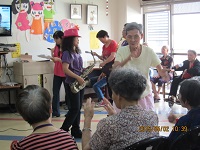 接著由雲水蘭若文教協會於二、四樓表演,首先由師父、雲水志工、小朋友的雲水樂坊、麗麗小天使為長輩帶來精彩的音樂表演,聽著音樂、看著師父與小朋友的笑容,長輩也跟著微笑;接下來,「你是我的花朵」帶動唱,長輩與家屬跟著活絡筋骨,最後「感恩的心」手語歌,許多家屬與長輩流下感動的眼淚。而三、七樓則是邀請大新社區發展協會的大新saxphone來表演,長輩看得有趣、聽得認真,邱長輩還喊「安扣、安扣」請演奏者再表演一次,讓演奏者笑開懷,表演得更認真且熱情地與其他長輩互動;在saxphone的伴奏下,將整場活動溫度提升了不少,長輩手上的沙鈴跟著saxphone的節奏而搖動著;在saxphone的演奏下,讓整個大廳更添熱鬧與活潑的氛圍,家屬與長輩輪番歌唱,展現自己的歌喉。