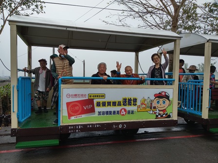 抵達溪湖糖廠後,突然一陣大雨,工作人員立即撐起大雨傘,將接長輩到五分車乘車處,很快地雨勢轉小,長輩與工作人員陸續坐上346蒸氣五分車,五分車沿著溪湖五分單車道來回,一路上解說員介紹早年的糖業文化及歷史,並說明五分車的由來,在介紹田間的農村景色,一路上可是收獲滿滿。