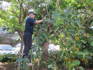 本家園區周邊樹林也栽種許多破布木,每年到豐收季節時,會由總務組先將枝幹從樹上鋸下,樹木鋸掉之後的部分會再生出綠芽,隔年會再生長出茂盛的果實!再於樹下進行初步剪除樹葉,移除昆蟲、蜘蛛絲等物的步驟後,最後送到一樓大廳請套房住民與長輩們協助清洗,剝下果實。同時本家廚房也會製作成兩種不同形式的成品加入餐點當中:塊狀形式與粒粒分明形式,根據外觀不同使用不同的製作方式,同時也可針對咀嚼能力不同的長輩給予各自適合的破布子食物形式。