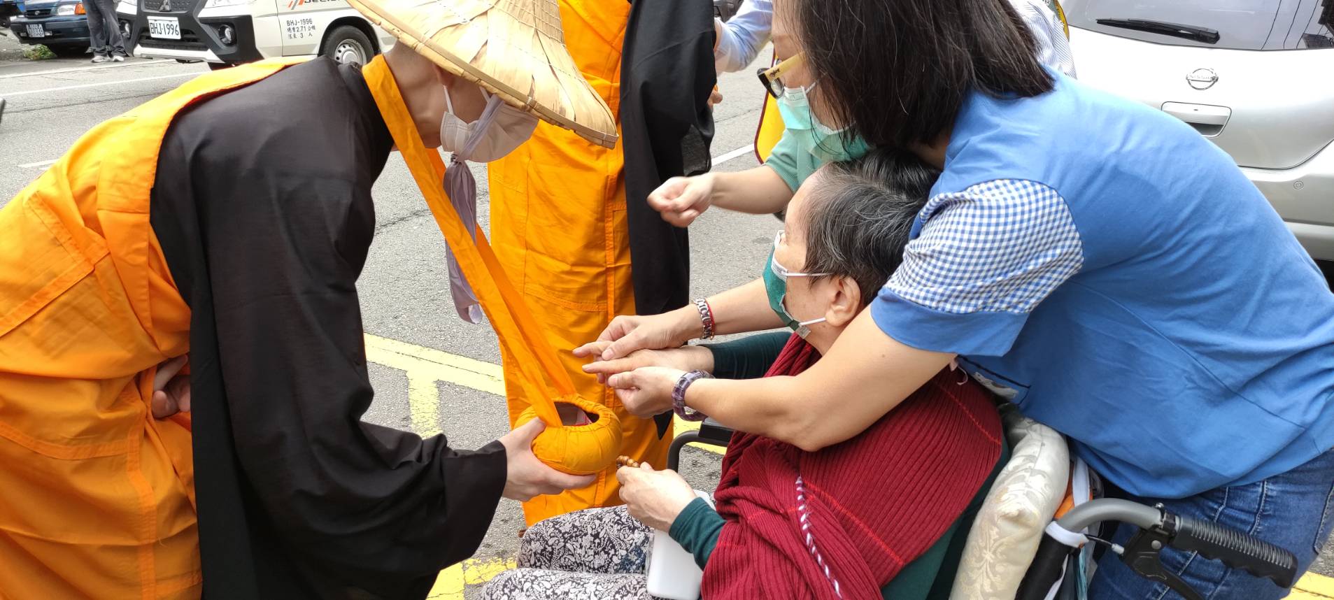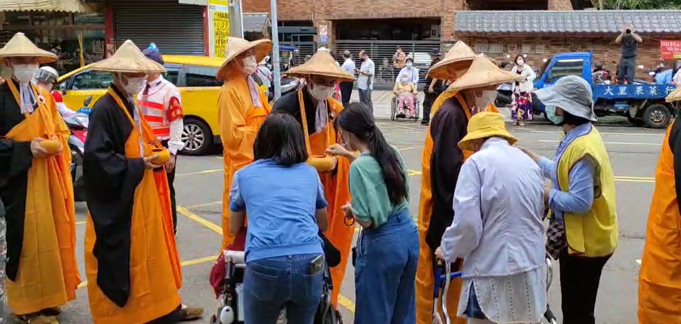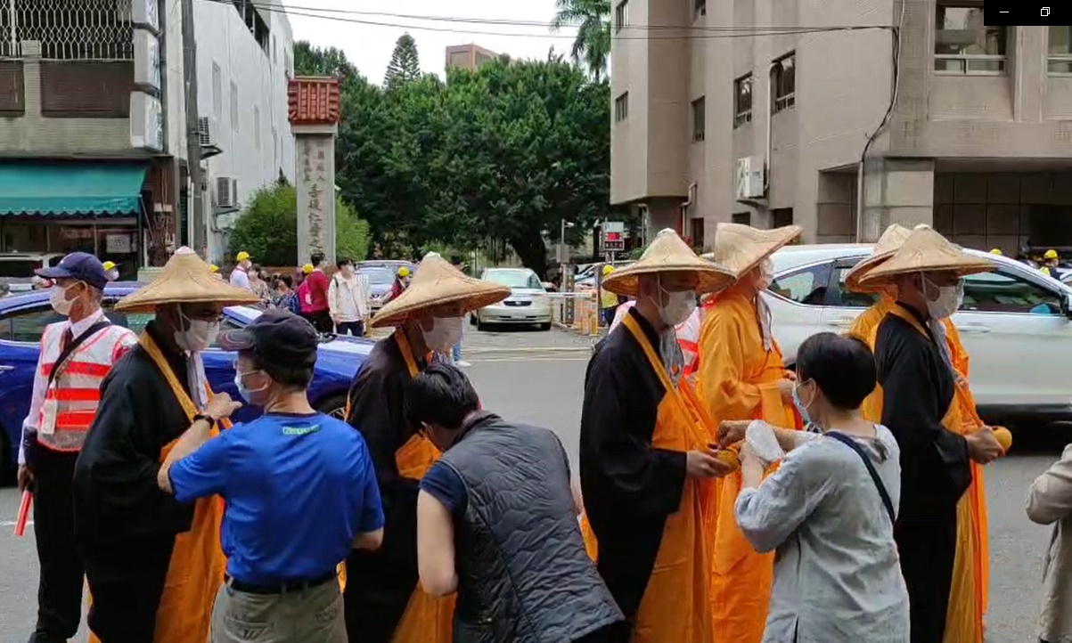 今天(10/31)佛光山傳授國際萬佛三壇大戒行腳托缽活動,行經本家門口。