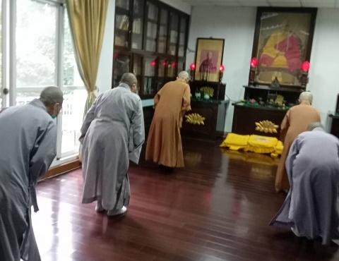 圓光佛學研究所一行五位法師,由教務長上性下嚴長老尼率團於10/10(一)上午前來本家園區參訪,在游前祕書引領之下,前往靈巖書樓參拜印光祖師法像。