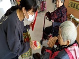 猜燈謎一直是在元宵節節慶時,家喻戶曉的一項活動,社工組今年依舊準備了豐富的題目和小獎品與長輩們互動,活動一開始先以難度較低、大部分都有聽過的題目為開頭,果不其然地長輩們都回答的相當迅速,拿到的小獎品一個接著一個,而隨著難度漸漸增加,長輩們開始需要多點思考與引導,但也是能讓長輩多多活絡大腦的好機會,當中有一位歲數已達一百歲的莊長輩,任何題目皆能馬上說出答案,非常令人佩服,也代表著真的是活到老、學到老。